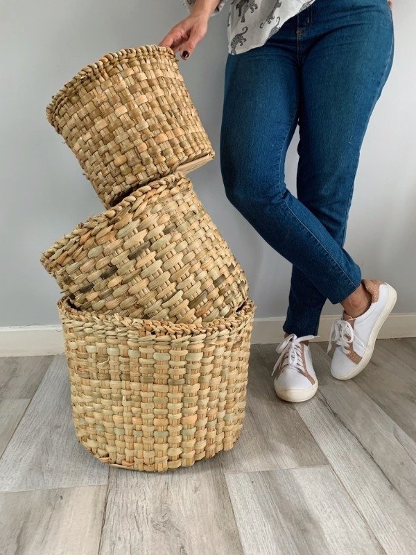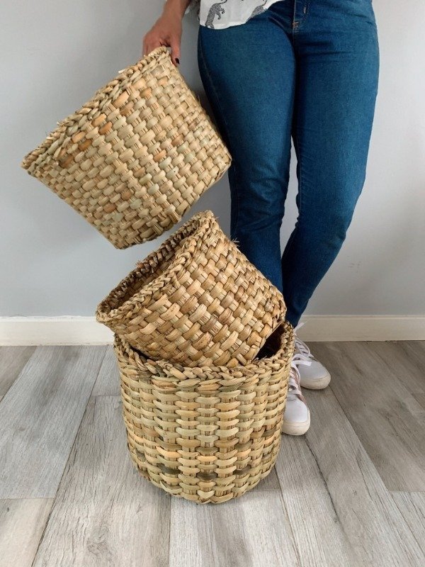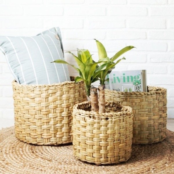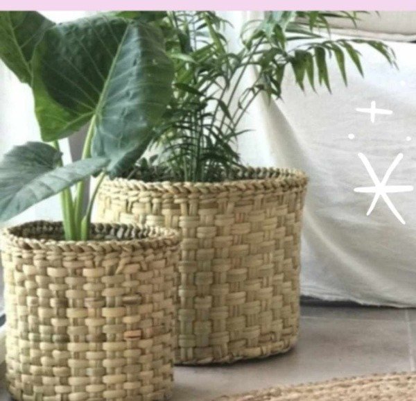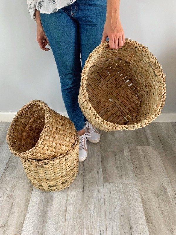 Cestos grandes tejidos en junco.